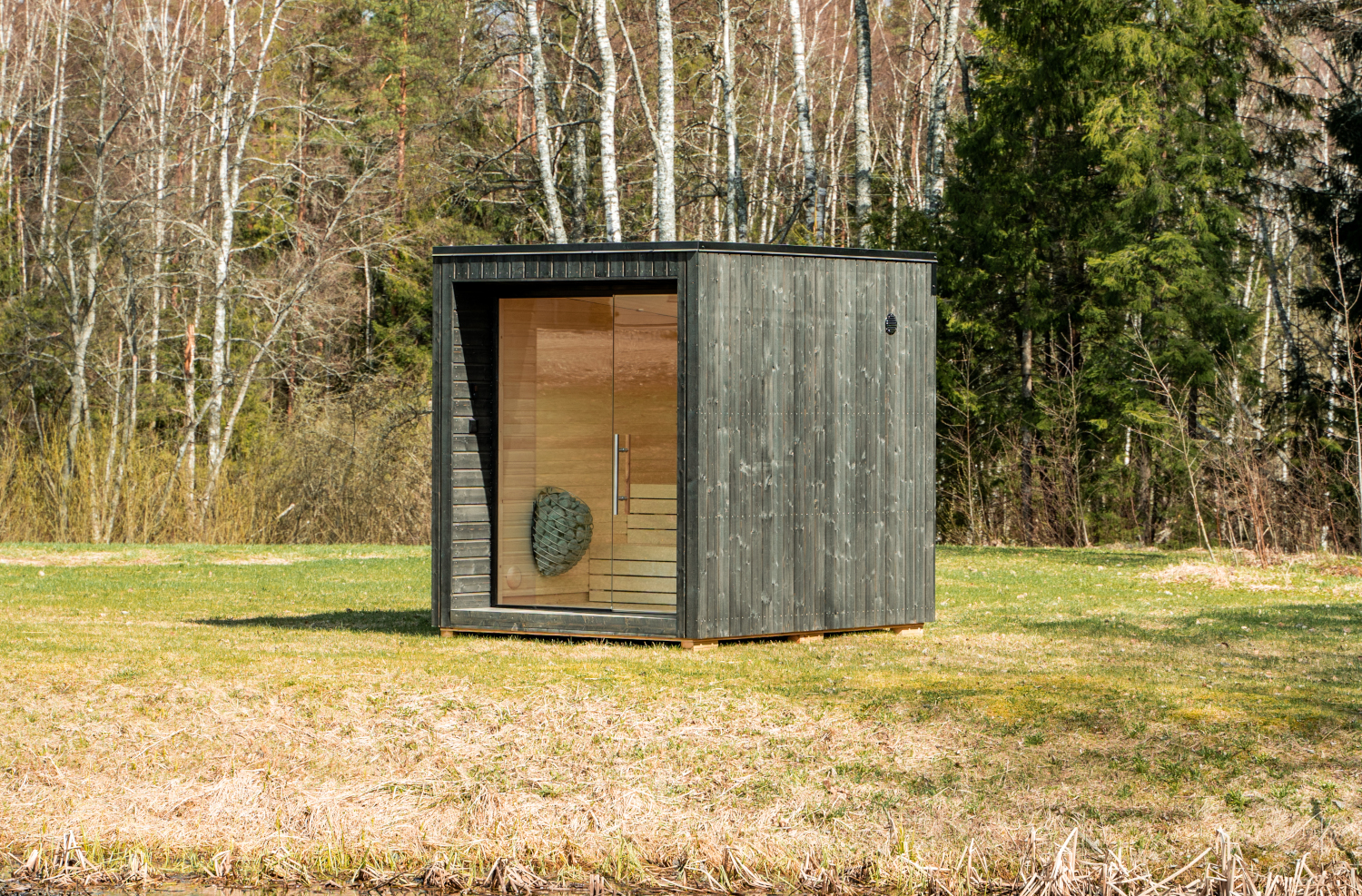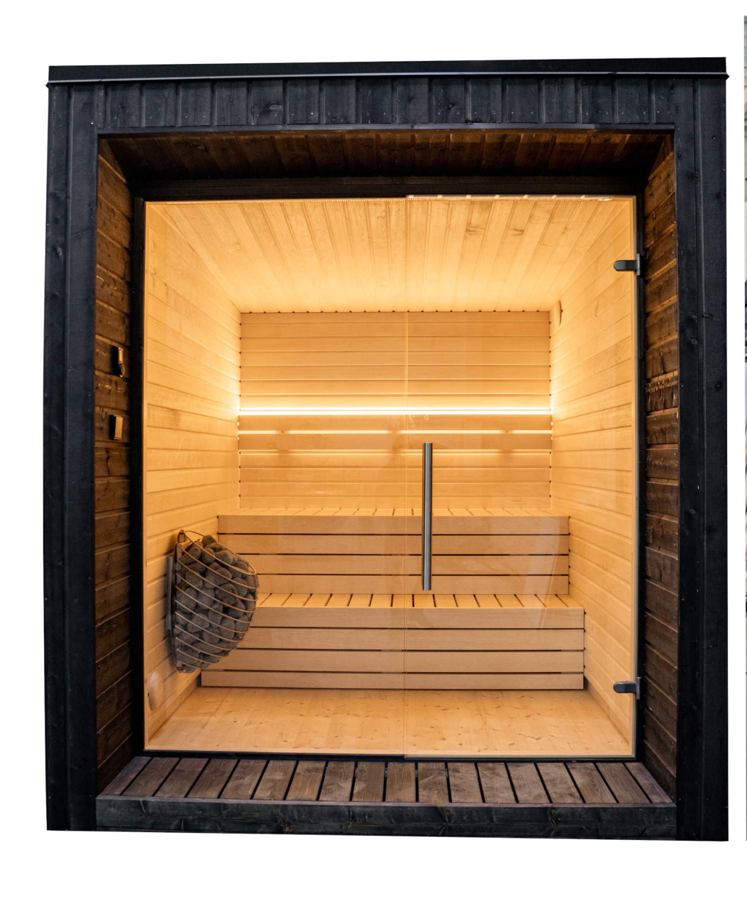 Le sauna Nemeau Fjord est livré monté, lasuré et prêt à l’emploi avec un poêle électrique ou à bois.