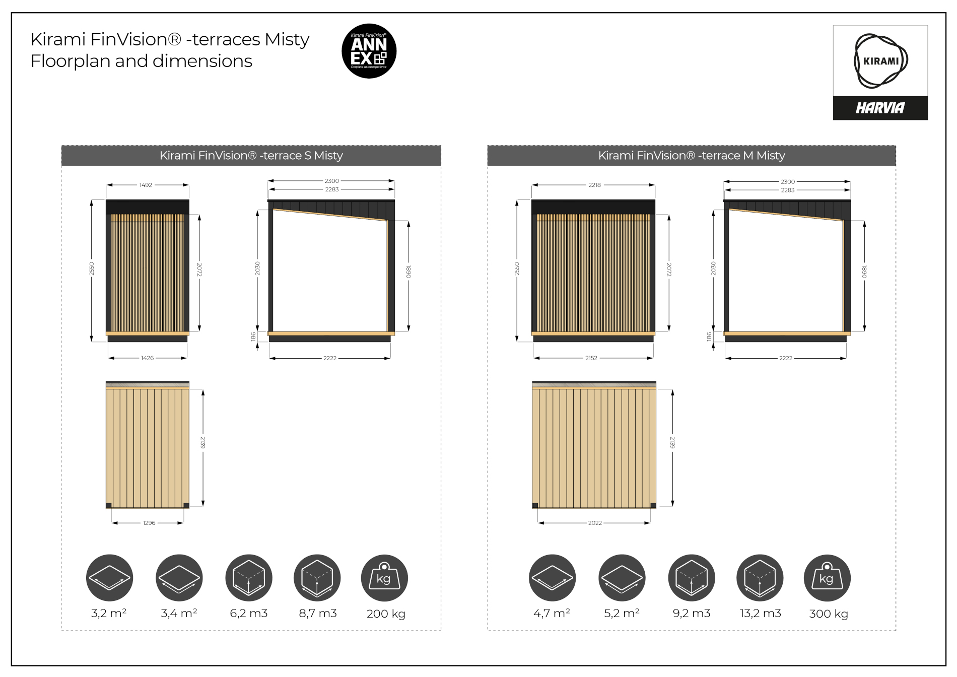 | Dimensions | Terrasse Misty M 222 x 207 x 255 cm, Terrasse Misty S 149 x 207 x 255 cm |