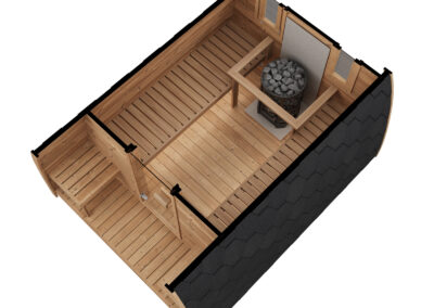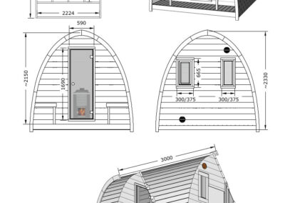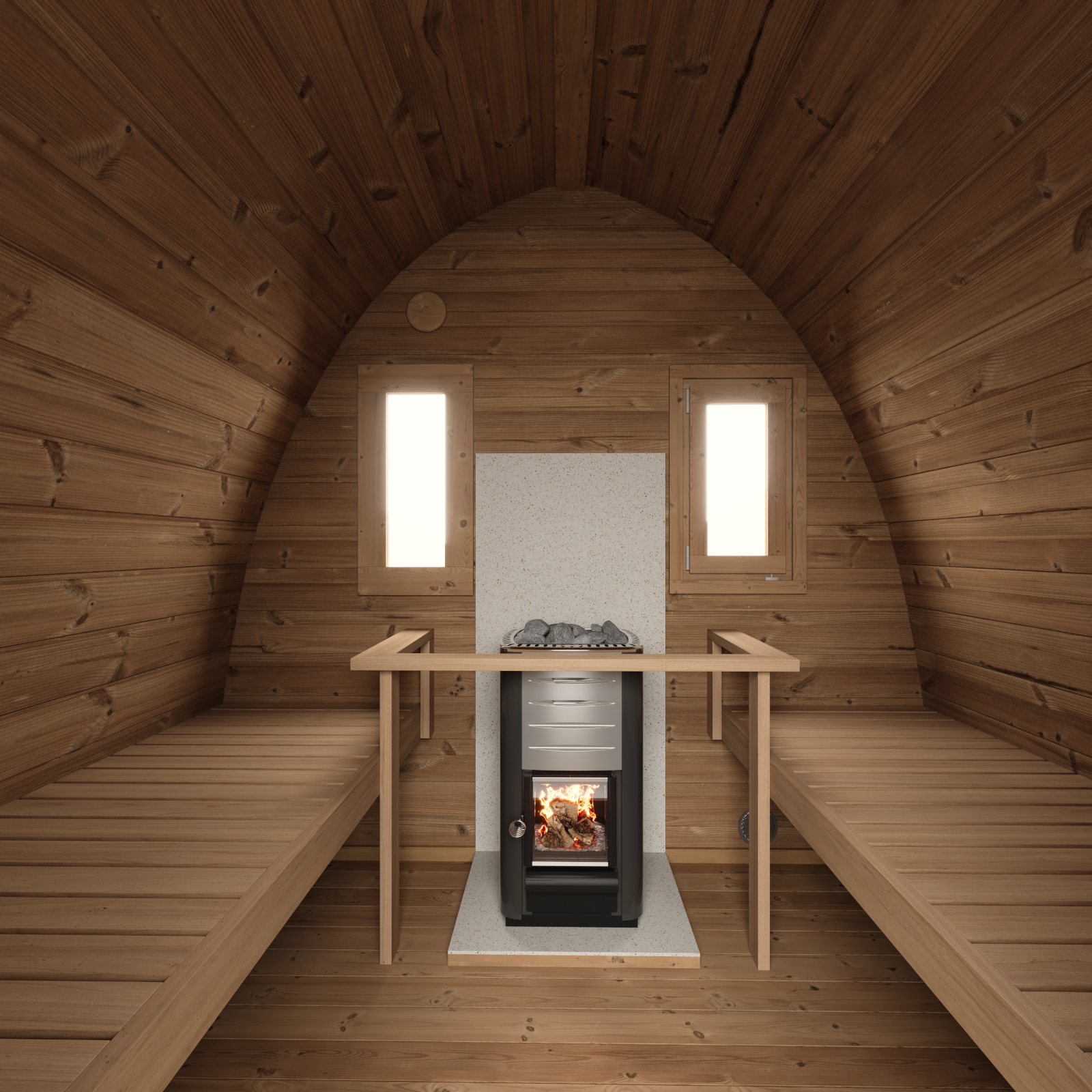 Sauna POD 300 assemblé avec poêle à bois, Sauna POD 300 assemblé avec poêle électrique, Sauna POD 300 en kit avec poêle à bois, Sauna POD 300 en kit avec poêle électrique