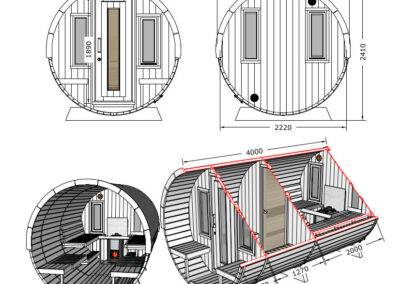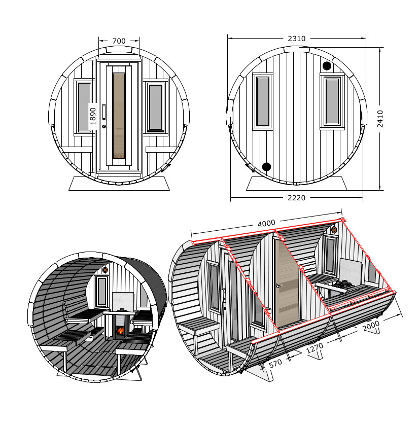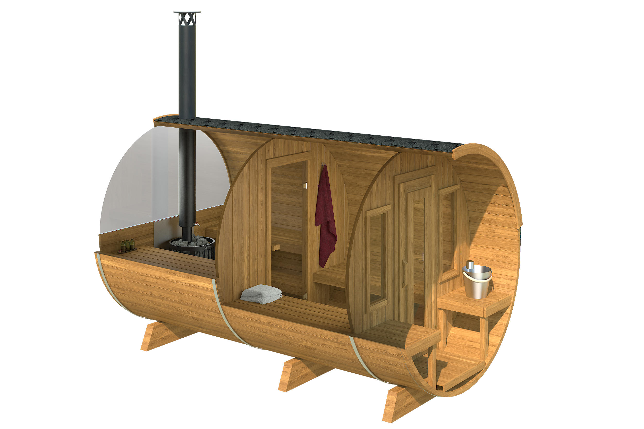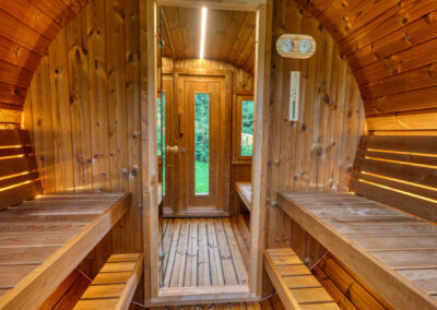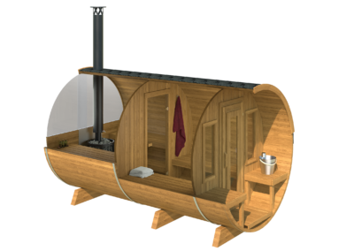 Deluxe 400 est un sauna tonneau privilégiant l’espace intérieur