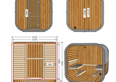 Il peut recevoir jusqu’à 3 personnes et sa forme permet de répartir uniformément la chaleur et la vapeur.