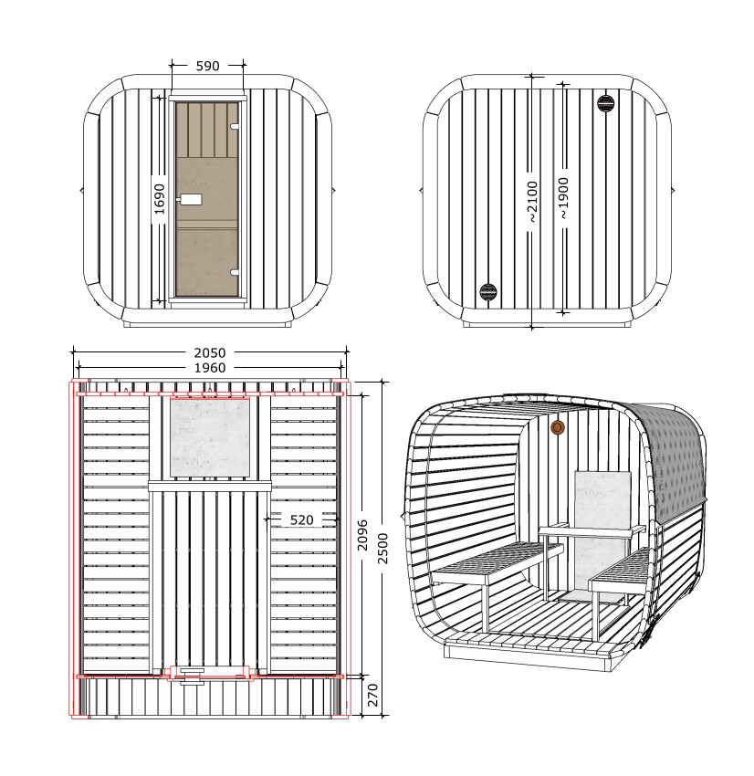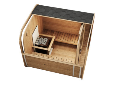 Il peut recevoir jusqu’à 3 personnes et sa forme permet de répartir uniformément la chaleur et la vapeur.