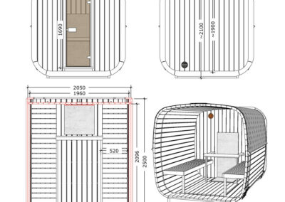 Nos saunas Ukko sont livrés soit non montés, palettisés à plat avec tous les matériaux, fixations, portes et fenêtres inclus, soit assemblés et lasurés, prêts à l’emploi.