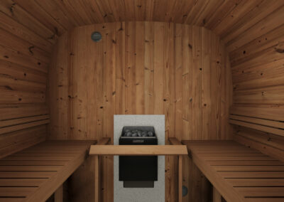 Il peut être chauffé au moyen d’un poêle électrique ou à bois de la gamme Harvia