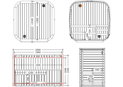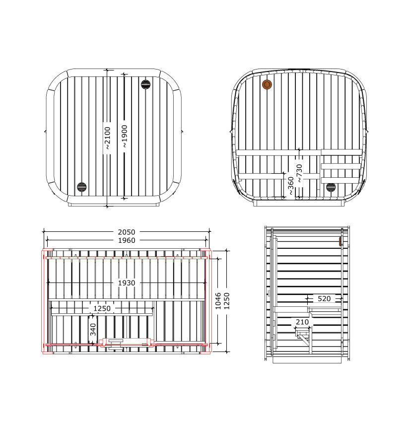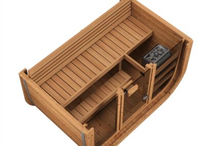Il peut recevoir jusqu’à 3 personnes et sa forme permet de répartir uniformément la chaleur et la vapeur.